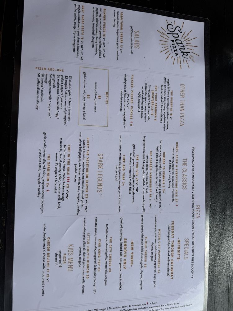 Customer reviews rave about the flavorful crust, friendly service, and extensive vegetarian options. Standout dishes like the Paneer & Fat Pizza and Fan Girl pizza showcase the creativity and quality of Spark Pizza's offerings. Outdoor seating, heated patio, and a welcoming atmosphere make it a popular spot for locals and visitors alike. Don't miss out on the award-winning pizzas at Spark Pizza!